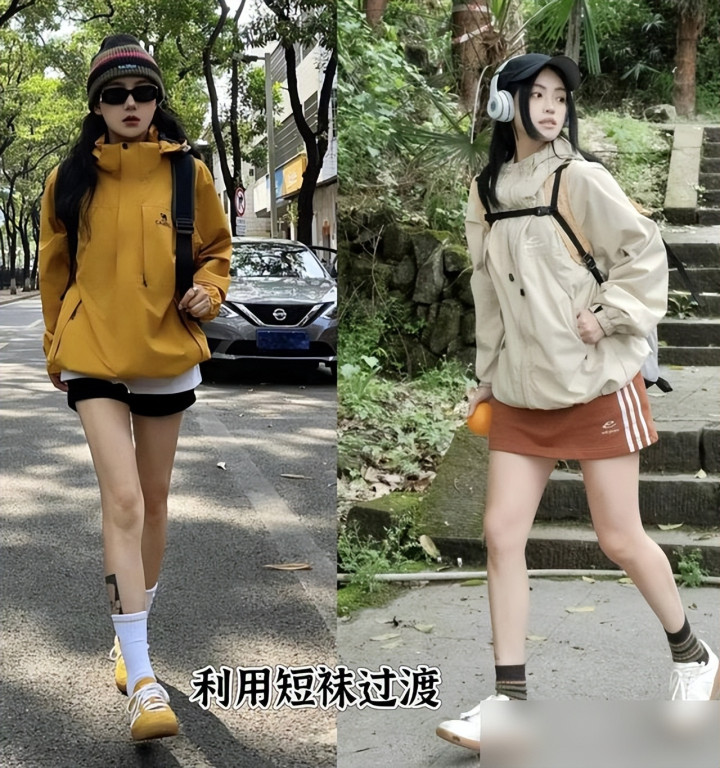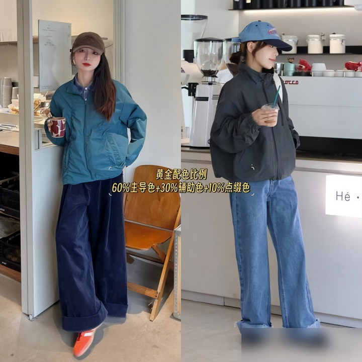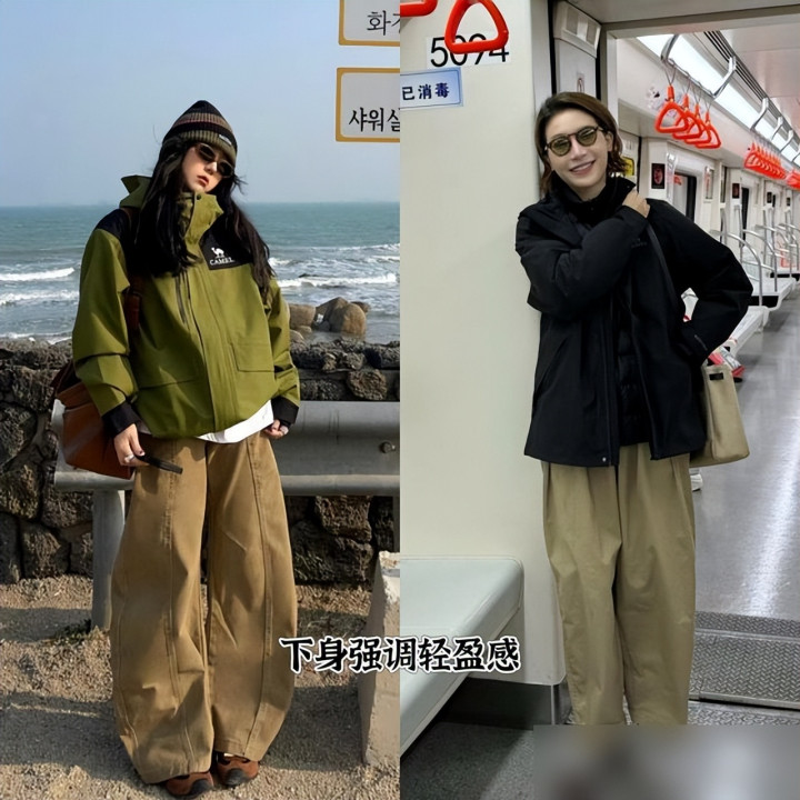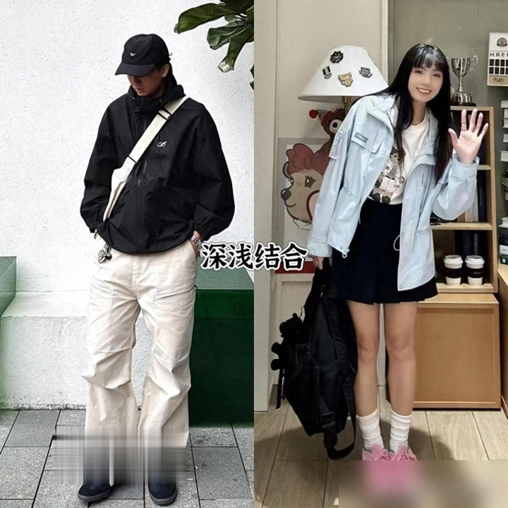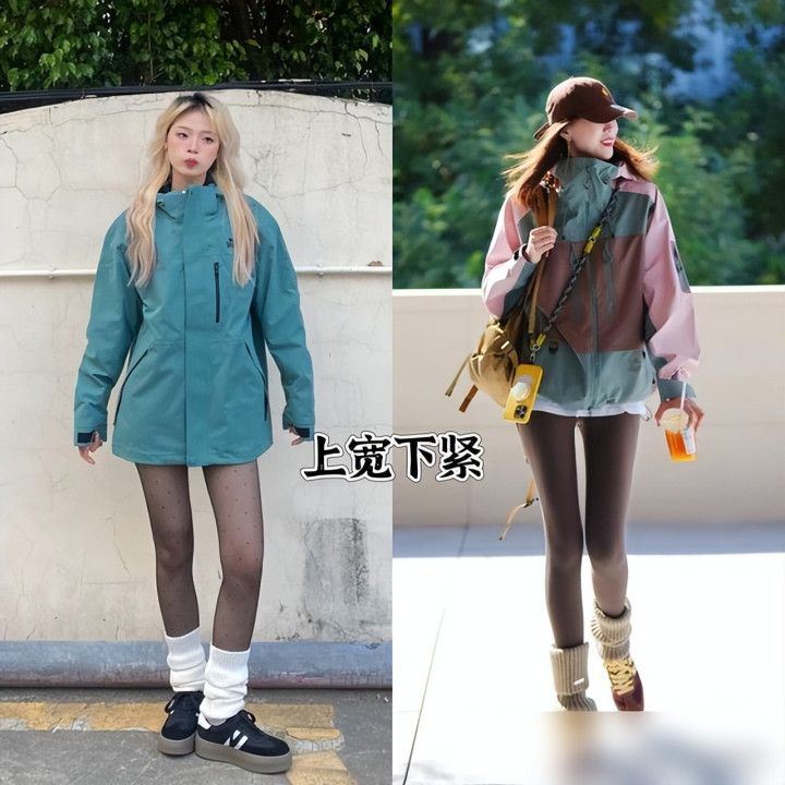 配色真的是“穿衣的魔法”!以前我穿冲锋衣总爱乱堆颜色,比如荧光黄配红卫衣,结果像裹了层“彩虹布”,现在学人家“色不过三”:亮彩色冲锋衣就配全白内搭,深色冲锋衣就加件浅灰卫衣,层次分明又不杂乱。还有搭瑜伽裤的,oversize冲锋衣刚好遮腰腹的小赘肉,瑜伽裤绷出腿部线条,再踩双samba鞋,居然把“运动风”穿成了“随性时髦”——这哪是穿衣服啊,是把“舒适”和“好看”揉成了一团,穿在身上都觉得“自己很会生活”。